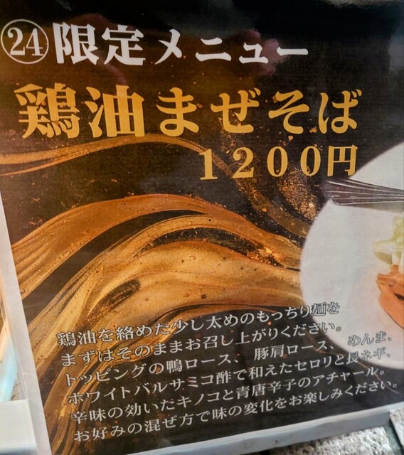 そして今回の限定ラーメンは「鶏油まぜそば」。