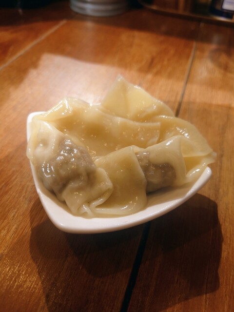 軽波氏らしいエスニックな要素とラーメンの融合が素晴らしいこちらも逸品、マトンワンタンもオツマミなの頂き、ネパールビールも進みます!
