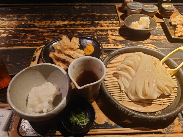 ざるうどんの麺が✨ピッカピカに輝いていて、見た目からしてもう美しいです!口に入れると驚くほどの弾力で、コシが非常に強いのが特徴です。噛みしめると麺自体に、まるで白玉のような上品な甘みを感じるんです!この優しい甘みが全体の味を格上げしていて、食べ応えも満点です!