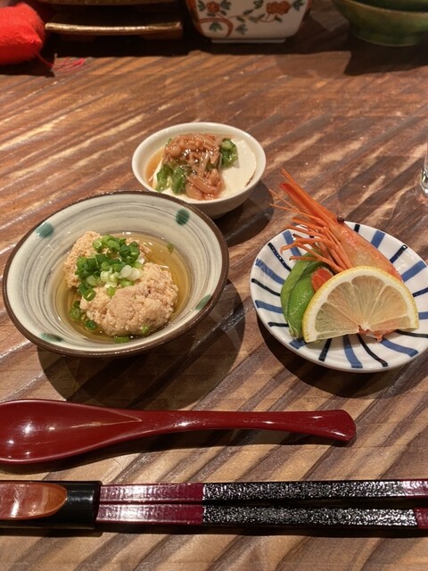 写真はないですが、お刺身の盛り合わせはどれも絶品。締めの「例のやつ」も感涙ものです。
