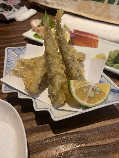 今回はメヒカリのら天ぷらを初めていただきました。身はホクホクで全く臭みがなく驚き。最高です。