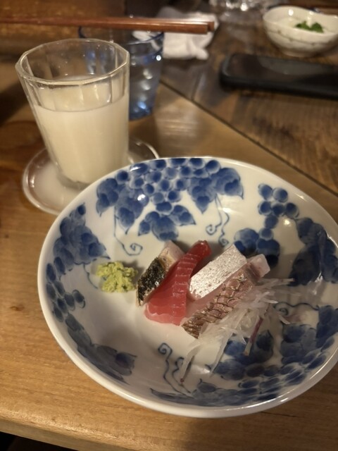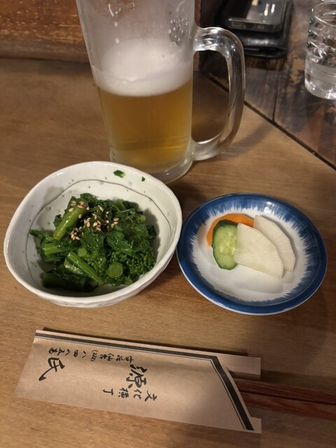 生ビール(おひたし、お新香)、初しぼり(冷奴)、国盛にごり(刺身)、初しぼり(おでん)ってな感じです。