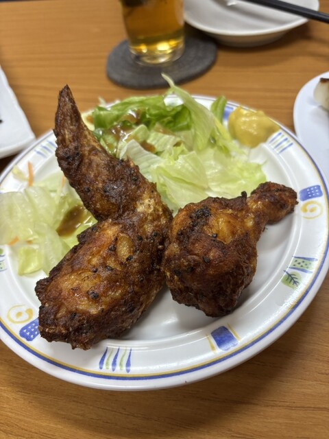 餡が詰まった餃子、エビのぷりぷり感もいいですね。羊肉串はスパイシーでビールが進みます。