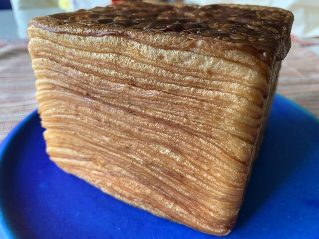 発酵バターがたっぷりと使われており27層を1枚毎めっくって食べる手の込んだモノ。