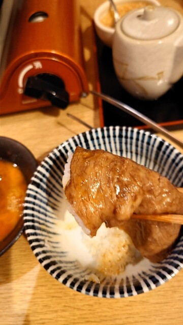 シンシンのお肉、卵液に潜らせたあと、ご飯に巻いて食べる。 なんて、贅沢♪ 美味しい❤