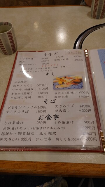 メニュー うなぎ、すし、そば、お食事