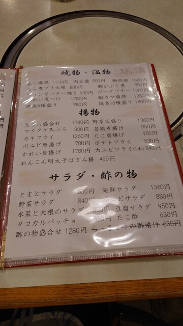 メニュー 焼物・温物、揚物、サラダ・酢の物