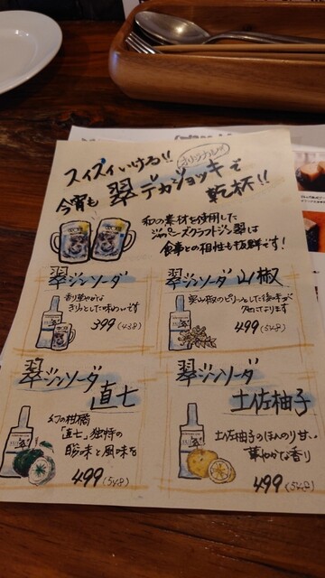 翠ジンソーダの山椒、直七、土佐柚子はこのお店おすすめだそうで、店員のお姉さん曰く、他の店では無い、お店オリジナルだそうです。