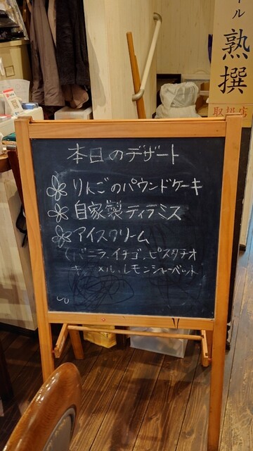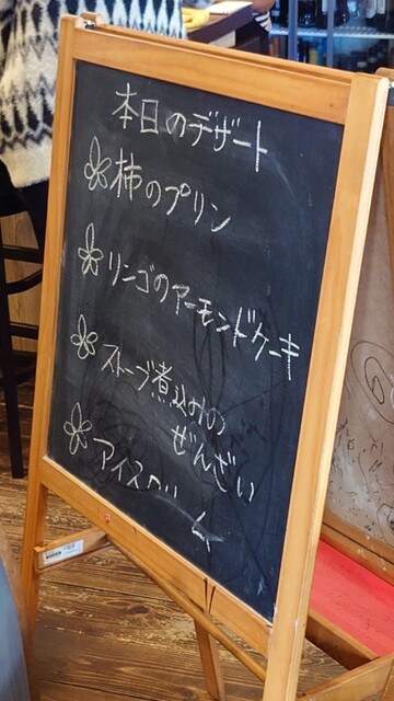 柿のプリン、ティラミス、りんごのアーモンドケーキ、ぜんざい、アイスの中から選択