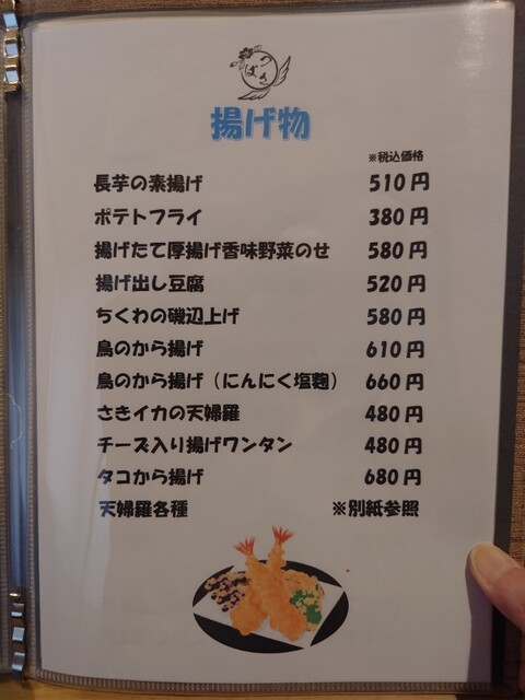 エビ2本、ナス、ピーマン、シイタケ、オクラ、サツマイモ、