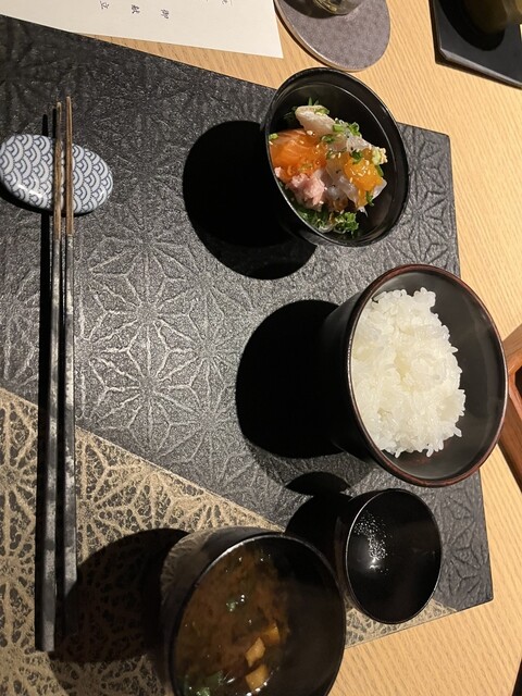 メインのローストビーフがかなり絶品。下に焼き石があることであったかいままいただけました。トリュフ風味の味噌といただけて初めての感覚でしたが、お肉との相性もよく、本当に柔らかくて美味しすぎました。