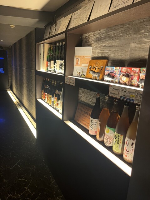 入り口から焼酎が並んでおり、照明の明るさも落ち着いた雰囲気でゆったり過ごせました。