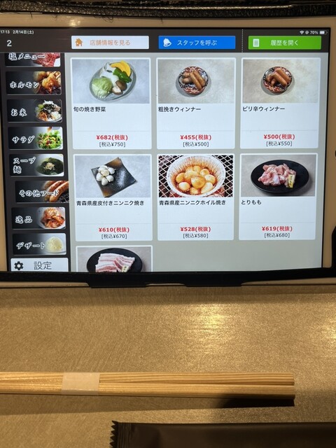 また、サービスメニューのお皿やニンニクなどiPadの注文の中に入っていてわざわざ店員さんを呼ばなくてもという気を遣わずに
