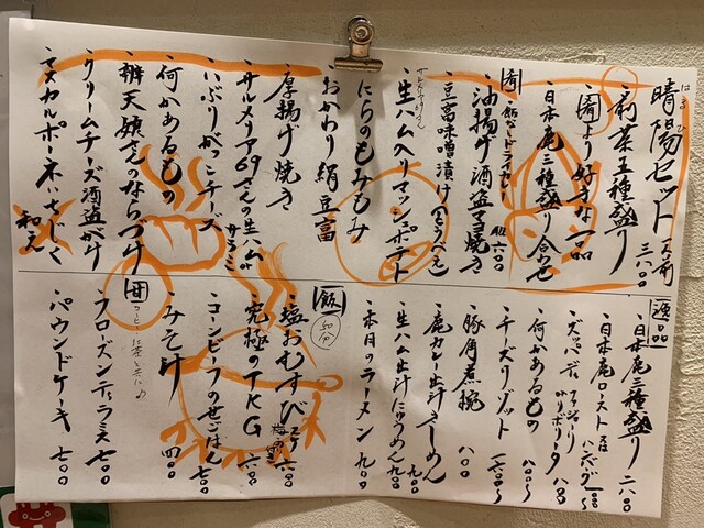 店外に貼られているメニュー例