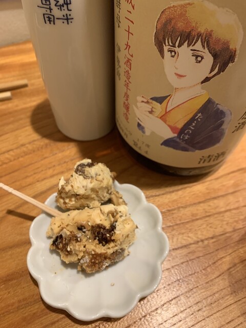 気さくな店主と話していると、以前は松濤(渋谷近くの高級住宅街)のイタリアンで修行されていたそう。お通しもどこかイタリアンの前菜的な発想。舞茸とほうれん草のお浸さず、豆腐、モツァレラチーズの酒粕漬(燗酒に合うというのでおちょこ付)、あぶらげの明太マヨ炙り。店主の目利きであちこちから一級品の食材や加工品を仕入れ、かつそれを自分の手柄と決していばらず、「⚪︎⚪︎のパンは日本一おいしいので〜」などと紹介しながら提供する。メニューにも「⚪︎⚪︎の生ハム」などと書いてある。できた料理は独創的で、和洋折衷。お酒も日本酒や焼酎をメインに、ワインも一級品を揃えてある。迷ったら店主に相談すると想定以上のおすすめを出してもらえる。