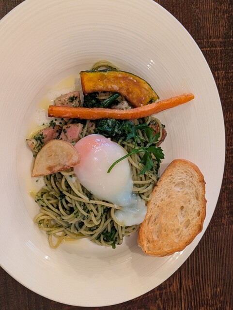 ランチは豊富で悩みましたがお魚のカルパッチョを注文、お連れは日替わりパスタ。