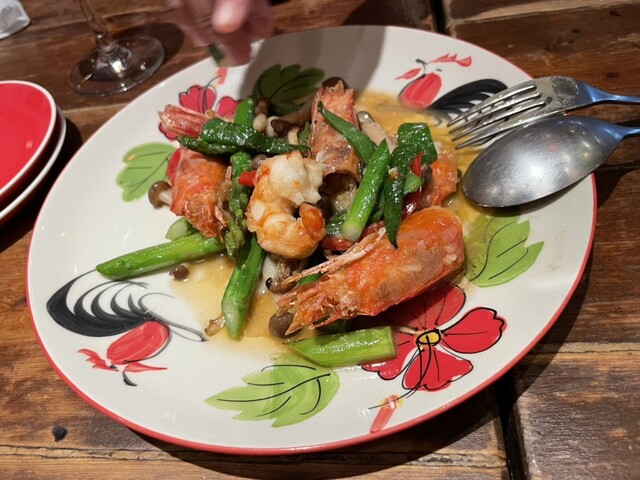 おすすめの大海老とアスパラの焦バター