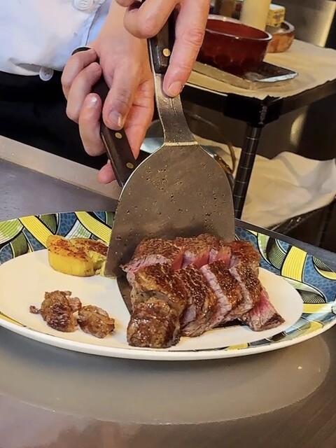 ヒレの方は300gも頼んだので、厨房から大きな塊肉が出て来た時は、正直食べ切れるのか不安でしたが、