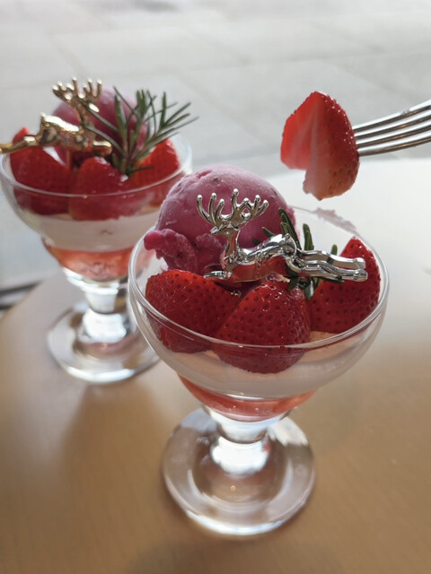 「クリスマスパフェ」はひとり1つで、出来あがったら各テーブルに運ばれて来ます。
