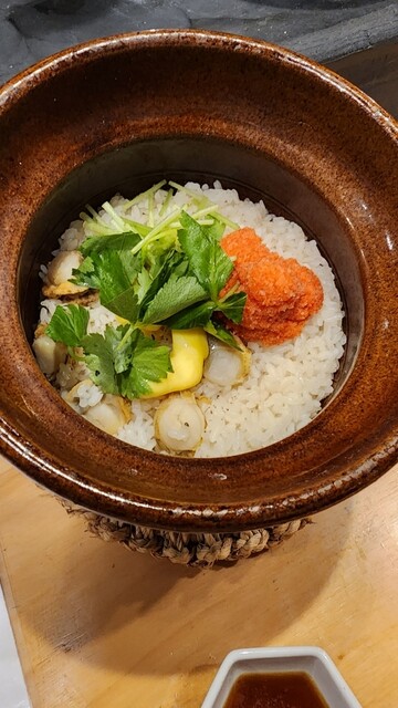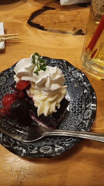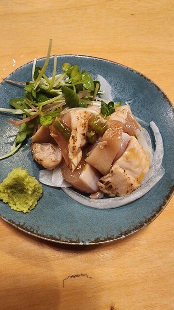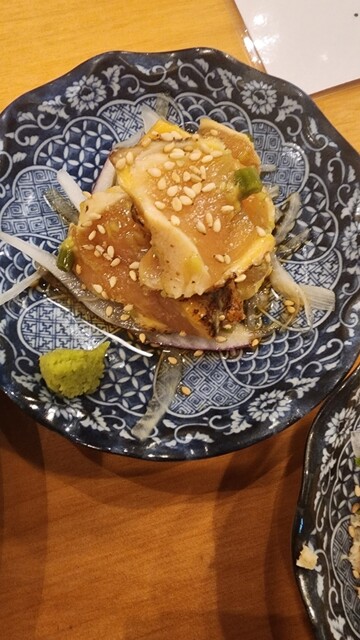 異国からつまむに変更になって、初めてのコース料理、従業員の皆様も、ガラッと、変わって、ソロ活が出来なくなったから、二人で利用、冷製茶碗蒸しは、生ビールにピッタリ、レバーもなかなか、藁焼や、刺身も美味しい、新しいのが、串に刺さったままのお魚は、めちゃめちゃ美味しかった、地鶏の炭火焼きも、土鍋御飯も、選択が出来て、今日は和牛、食べきれず、おにぎりにしてもらい、テイクアウト、ブロッコリーの竜田揚げは、連れが感動してた、ただ、ドリンクのトマトサワーが、前は、塩トマトサワーで、2杯目以降最後まで飲んでたけど、塩が無くなって、ただのトマトサワー、美味しく無かった所が残念です。誕生日のプレートは、ありがとうございました。