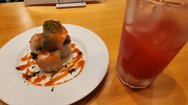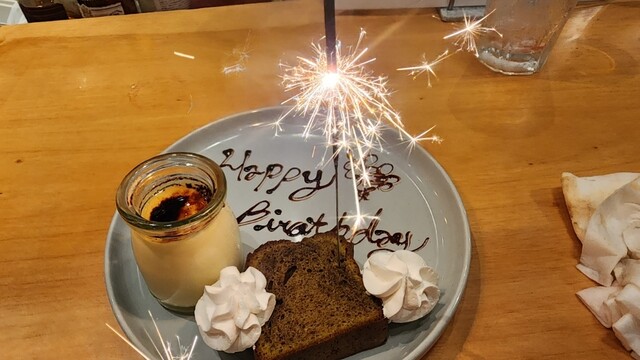 今日は、お気に入りの従業員のきららさん、最終出勤日で、初めての、飲兵衛連れて行ったよ~生ビール、学習してる~だんだん美味しくなってる~(笑)、でも2杯まで、後は、ラストまで、塩トマトサワー、藁焼のカツオも、美味しい、げんこつ焼売絶品、生春巻き、焼春巻きも、文句無し、飲兵衛が、小松菜ハイボールに挑戦、ポイントがいっぱいになって、土鍋ご飯が無料で提供、今回は明太子ホタテバターを食べた~お腹いっぱいになったんで、残りは、おにぎりにテイクアウトしてもらった~♪誕生日サプライズの花火も良かった~♪次回は、ソロで予約したけど、きららさんがいない異国は、どうかな?