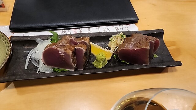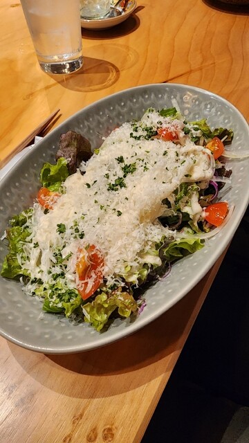 昨日は、まさかの飛行機遅延で、連れが来れず、ひとりで2人分のコース料理を食べました。山芋のナムル、焼魚〜串に刺さって、キャンプに来た気分で食べました。鰹の藁焼が大きくて食べごたえ、抜群でした。唐揚げ〜最高〜シーザーサラダも、ひとりで食べました。ドリンクはクーポンのワインと塩トマトサワーのみ、システム変わって、飲み放題がコースから分離されてるのが嬉しい、今度は、計画立てて行きます。