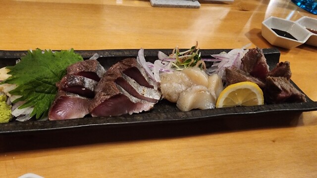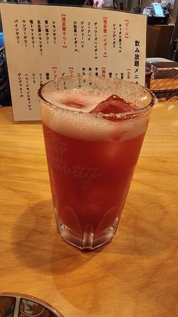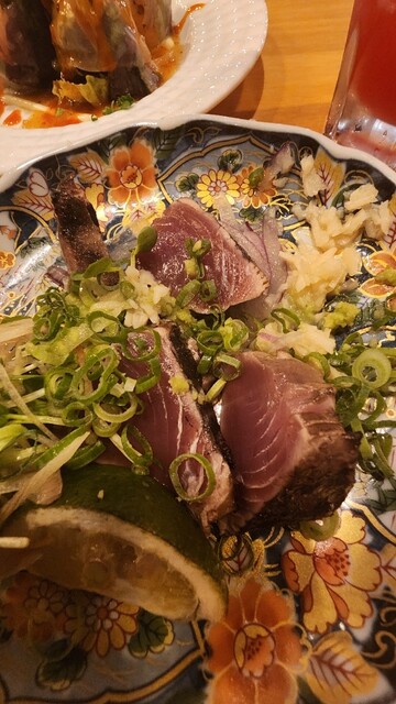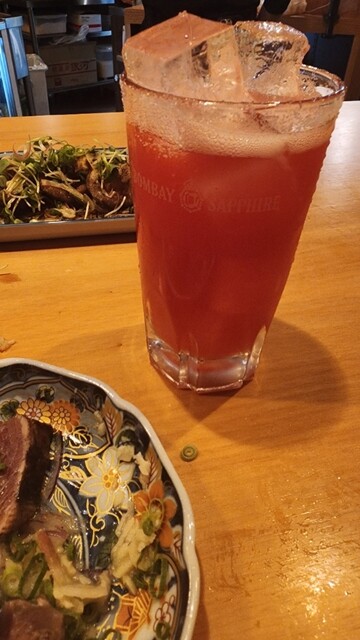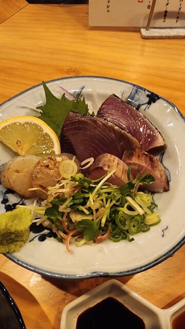 今日は、20時30分から、ソロ活、5000円コース、飲み放題は塩トマトサワーが主流だが、今日は、白ワインに生ビール、小松菜サワーも嗜んだ、料理は、相変わらず美味しい、藁やきの鰹と、ホタテ、サバの刺身は絶品、しかし、今日は、満席状態で、最終便に間に合わないので、2品の提供が出来ず、次回に持ち越すことになったけど、それも想定内、次回は、二人で利用するが、楽しみだ~♪