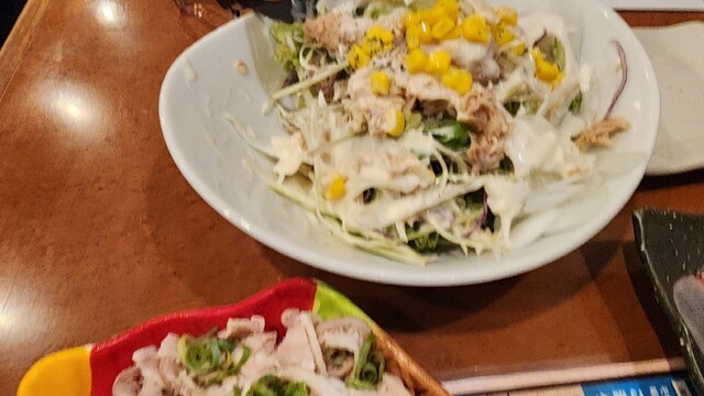 今回は2回目、創作の串は脂が乗ってて美味しいし、ごまさばも最高、焼魚も美味しかったし、締めの、焼きおにぎり明太子の加減がちょうど良い~飲み放題コースは、生ビールと、レモンサワー、タコハイ、日本酒の冷酒を堪能したけど、日本酒熱燗が無かったけど、店長の計らいで熱燗にしてくれてありがとうございます。クーポン使って平日特典の割引もお財布に優しい~♪また、行きます~♪