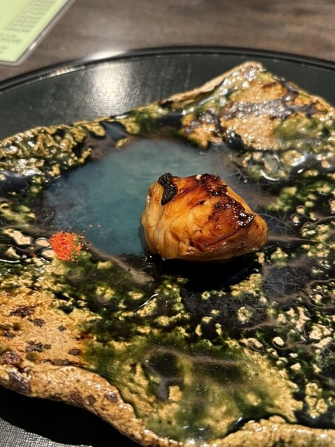 5番目の料理、百合根入り餡掛け茶碗蒸しフグの白子揚げを乗せて