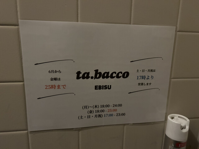 久しぶりの友人との会食。お酒は色々飲みたいし、食事もその時の気分にあわせて適当に選びたいし、しかも美味しいものが食べたいし、というわがままに応えてくれるイタリアン。ta.baccoに行ってきました。