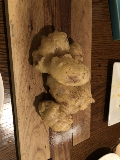 前菜、鶏刺、串物三種、水炊き、ご飯、アイスクリームのコースで鶏刺は新鮮でないと、なかなか口にできないのですが、こ...