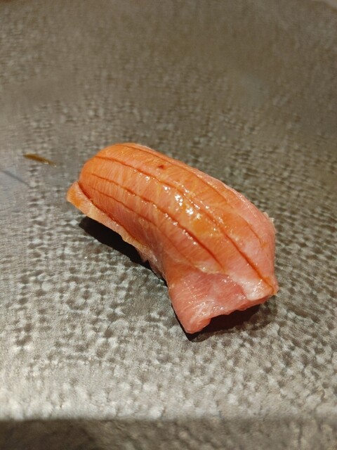 さすがの名店、盛り付けからフレンチ感たっぷりのお鮨までどれも美味しく、赤酢のシャリも若干甘めで自分好み。