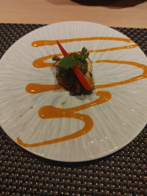 蒸しあわび雲丹ソースかけは、残ったソースに大葉を巻いていただく追いシャリは絶品!