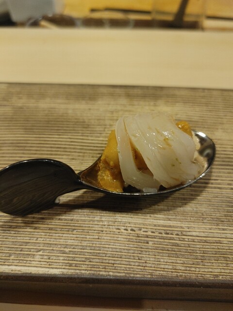 いわしに炙り加減が絶妙な金目鯛、北海道根室産バフンウニと愛知のスミイカを使ったイカウニにうっとり。