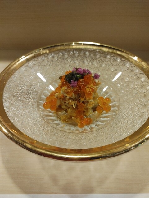 キャビアとウニ、セイコガニの小丼はひとくちではもったいないほど。生きている喜びを感じます。