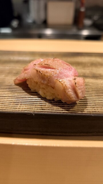 いきなりの赤身中トロからにぎりがスタート。和歌山那智勝浦産、とろけます。この先が楽しみです。