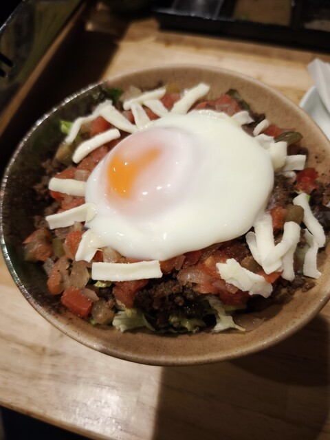 〆に牛タンそぼろのサルサご飯、さっぱりとしていてわか玉スープとともに〆にもってこいです。