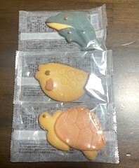 ごまパンダの豆菓子・クルミの谷の焼き菓子(エンガトルテみたい)・メルヘンクッキーの3種類(イルカ・ふぐ・カメ)