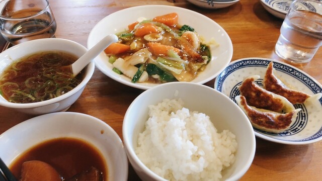 スープと餃子とライスが付いた八宝菜をオーダー。