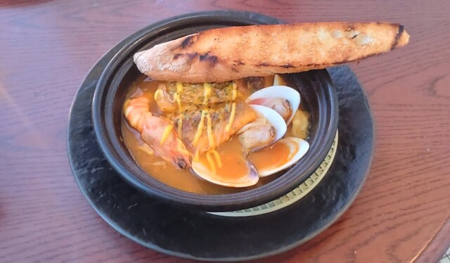 葉山の名店「日影茶屋」の姉妹店で、海に突き出すように立つ地中海風レストラン。2〜3階はコース中心ですが、今回は1階のアラカルトフロアを予約。夕方5時にお伺いして、夕焼けの海に面したお席に案内して頂きました。シーザーサラダ、アヒージョ、湘南しらすのペペロンチーノを頂き、最後はお店自慢のブイヤベースを堪能。かつて初めて両親に連れて来て貰ったときも感動しましたが、何度来ても感動の味と絶景です。