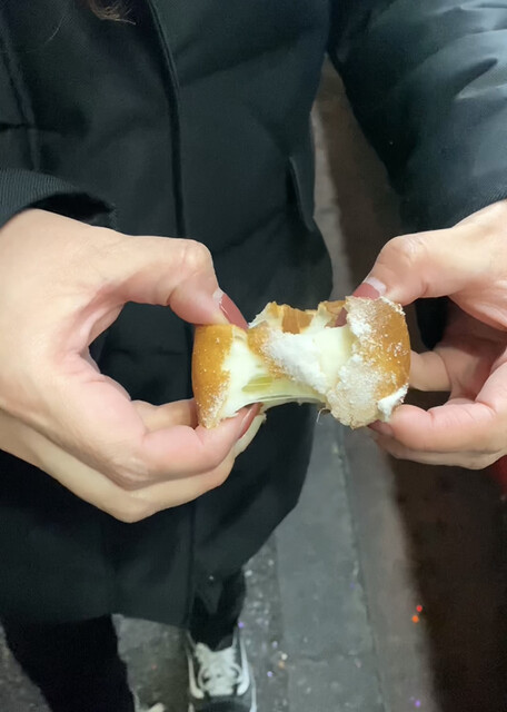 もちもちっとした弾力のある生地のまんまるボールの中に、みょ〜んなチーズがたっぷり☺️