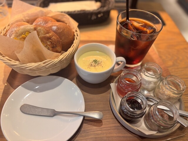 追加でスープ200円とドリンク300円を頼みました。この日のスープは冷製のコーンスープでした。