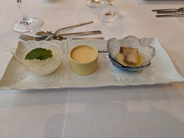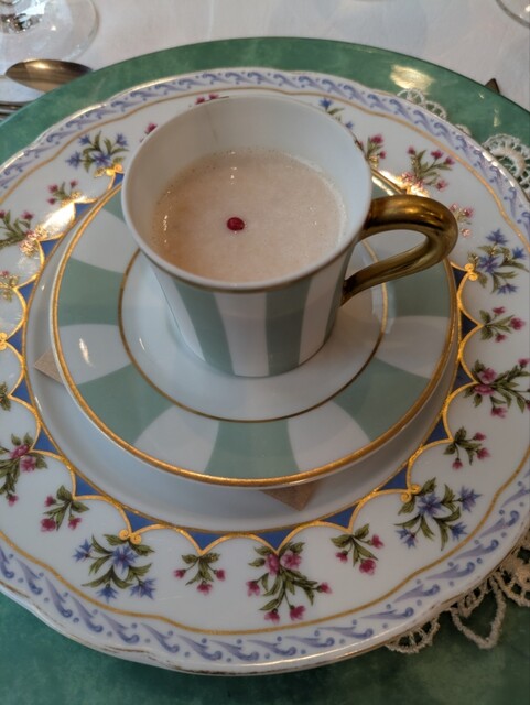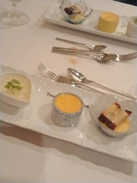 お誕生日のお祝いと同窓会を兼ねて予約しましたメニューは絵に描いたような素晴らしい作品です一皿ごとに世界が広がります見て・食べて・香と味を楽しむ事が出来ます感性そのものです季節限定の冷たい桃のスープは絶品です仔羊のローストはまろやかなソースが美味しかったですファンが多いのが理解できます
