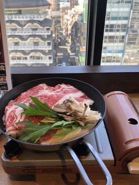 12時頃店内ほぼ満席の様子を見た。大人気なので窓際の席のみ残り、でも景色が良かったため街を眺めながらすき焼きを食べて素晴らしかった。スタッフの説明がいつも丁寧だった。料理を出すのも早かった。値段と比べてコスパ高いと思う。ちなみにうどんの追加がおすすめだと思うよ笑笑