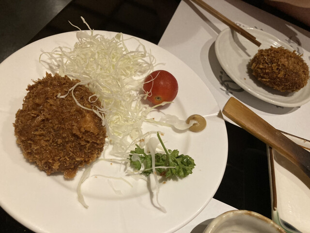 刺身こんにゃくは舌に伝わってくる食感が絶妙に良いですし、焼き味噌は香ばしい香りが食欲をそそります。メンチカツは肉肉しくジューシーで肉のおいしさが口にいっぱい広がります。炙り肉寿司も真空で調理したような?肉の柔らかさが伝わってきます。舞茸の天ぷらは、ころもがサクッとして舞茸自身も生きており、うまいです。すき焼き丼はエスプーマのような泡に出汁が含まれており、ご飯とよく絡まり鼻から抜ける香りがよかったです。きざみ鴨せいろも蕎麦の風味や歯応えが良く、鴨のつけ汁は、お腹に優しい少し甘めの味がとてもおいしかったです。