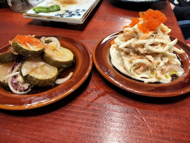 ズッキーニのマリネ・根セロリとカニのタルタル