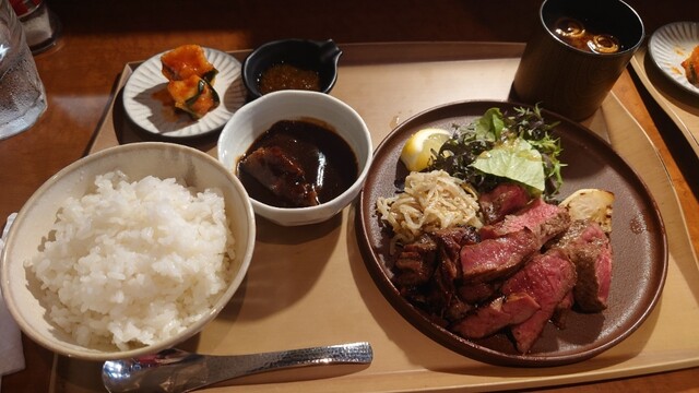 赤身肉100gに牛タン50gがセットになった『スペシャルランチ』(2,000円)を、たくさん食べたい連れは『限定和牛赤身ステーキセット』(2,900円)200gに牛タン50gをトッピング(700円)。