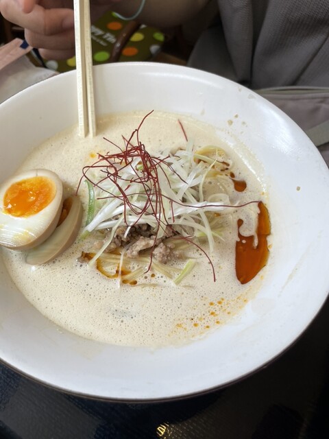 妻の泡担々麺 ※玉子は子供達のそぼろ丼から頂いたのでデフォではついてませ