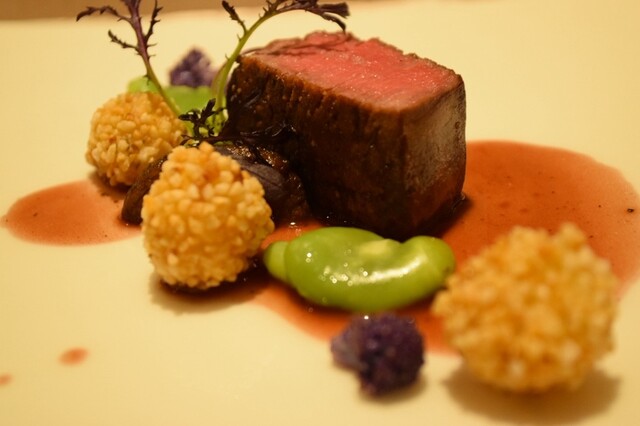 ☆鹿児島県産和牛ヒレ肉のステーキ さつまいもの玄米香煎揚げ添え