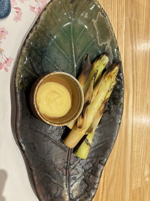 焼物 旬のホッケ、蕗の浅漬け、染めおろし